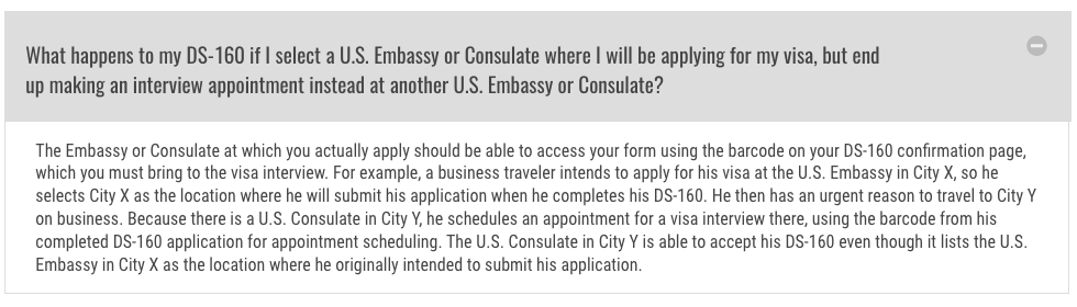 DS-160 Frequently Asked Questions:https://travel.state.gov/content/travel/en/us-visas/visa-information-resources/forms/ds-160-online-nonimmigrant-visa-application/ds-160-faqs.html