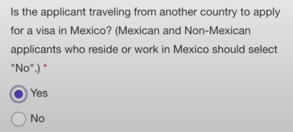 - Option 3:TCN选”Yes”, 有人申请了墨西哥临时居民证, 以当地人身份去面谈.